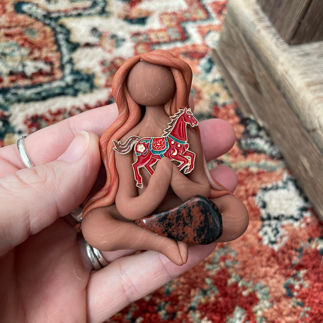 She holds: a fire horse charm and mahogany obsidian~